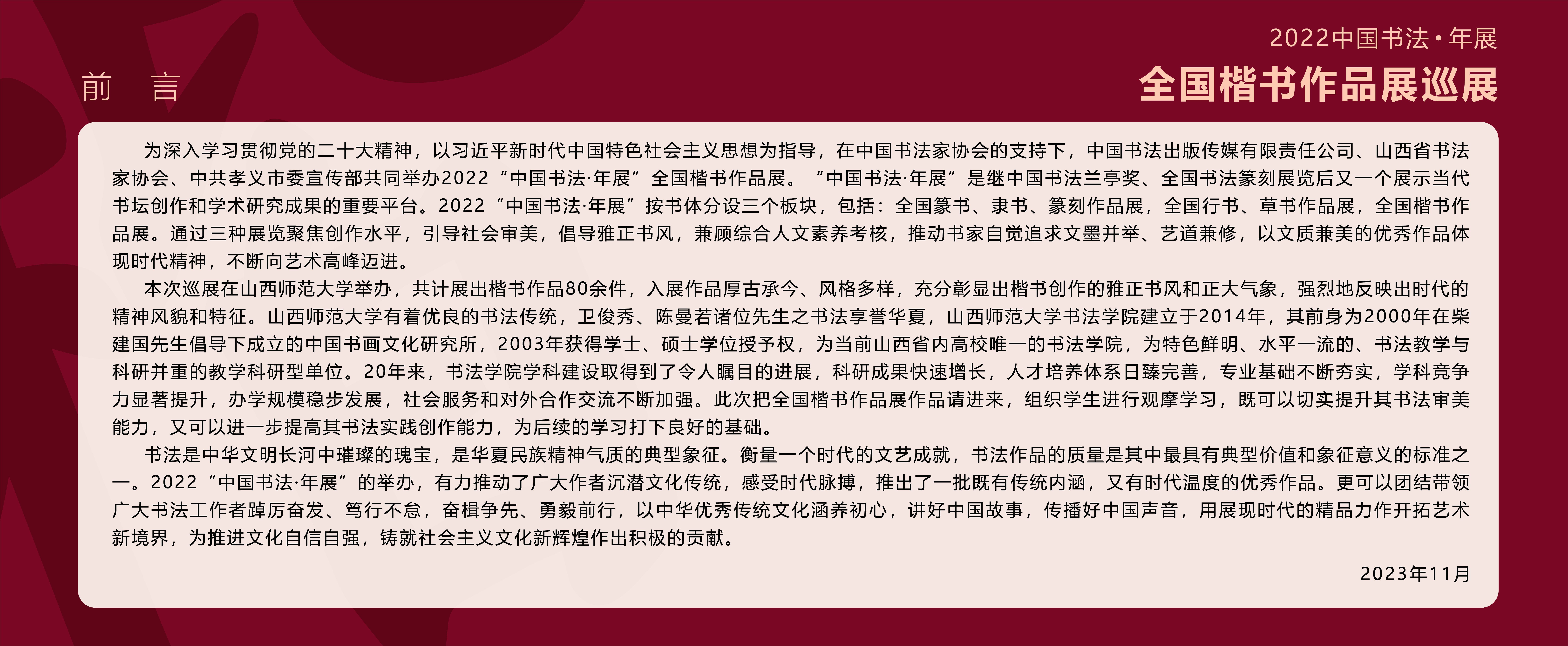展讯 | 2022中国书法•年展:全国楷书作品展巡展·山西师大站