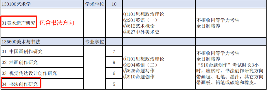 有意向申报书法专业研究生的考生注意,美术遗产研究(学硕)、书法创作研究(专硕)均可申报。
