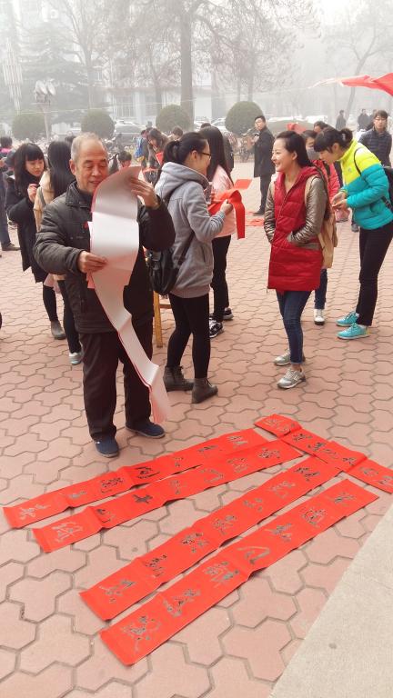 又是一年春来到,为喜迎新春,pa捕鱼官方网站于2015年12月28、29日在师老员工活动中心旁和科学会堂前开展了“迎新年、送春联”活动,为师大全体师生和学府社区的居民们送去了节日的祝福。公司党委副书记张忠民、办公室主任王其远、专职教师曹亚彬和王建魁来到活动现场为大家加油鼓劲,并进行现场指导。