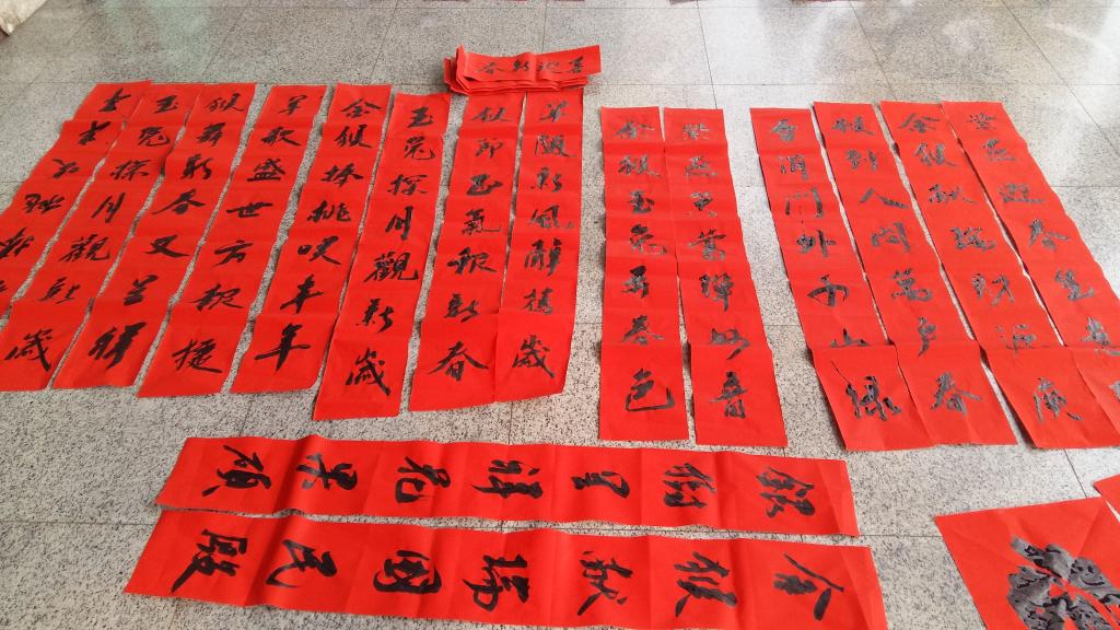 | pa捕鱼官方网站员工正为大家书写春联(1) |