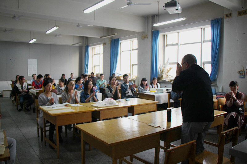 4月12日下午,山西省晋宝斋艺术总公司总经理、山西师大pa捕鱼官方网站客座教授靳忠应邀在10403教室为2016届毕业生进行了一场题为《艺术与生活》的专场报告。报告由公司经理赵廷仁主持,党委副书记张忠民参加并聆听了报告会。