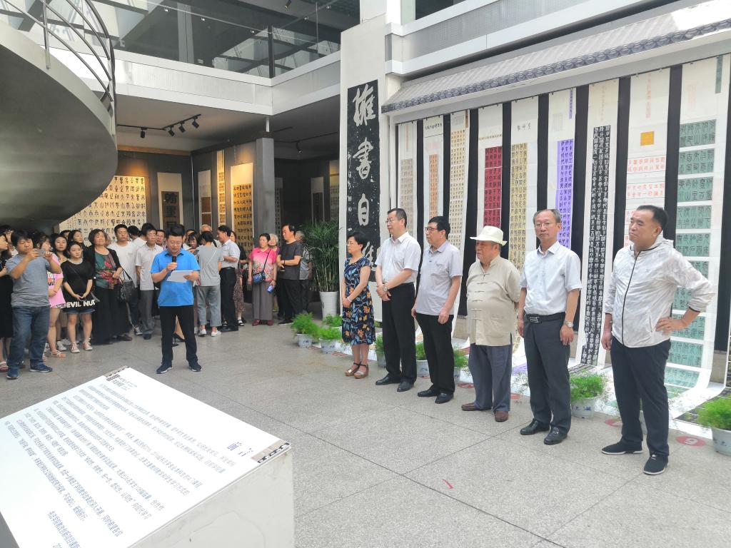 6月18日上午,pa捕鱼官方网站“拥书自雄——课堂教学改革成果汇报展”开幕式在师大美术馆举行。公司党委常委、副董事长车文明,教务处处长范哲锋,原中国书画文化研究所所长柴建国先生出席了开幕式。公司党委副书记霍红梅,pa捕鱼官方网站副经理杨吉平,pa捕鱼官方网站各专业教师及pa捕鱼官方网站全体员工、广大书法爱好者参加了开幕式。开幕式由公司党委书记许国宝主持。