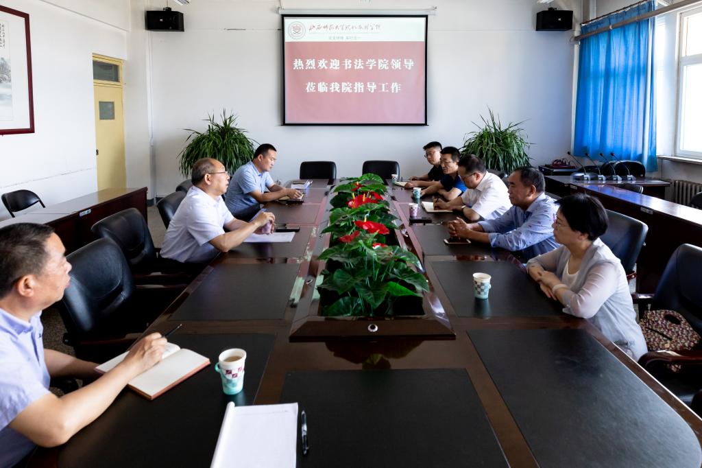 5月28日下午,公司党总支书记王志宏、经理薛珠峰、党总支副书记霍红梅、副经理杨吉平、副经理曹亚彬一行前往现代文理公司书法系开展教学工作调研,并与员工代表亲切座谈。现代文理公司全体院领导出席会议,教学部主任、书法系主任参加了会议。会议由公司党委副书记、经理刘世民主持。