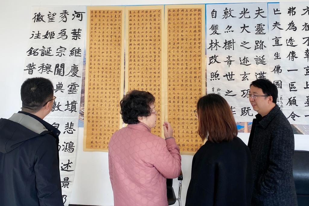 沈晓英先生是公司外聘的最早的硕士研究生指导教师,曾于2005-2007年在公司书法专业任教,对于硕士点的发展与建设付出心血。公司教师陪同沈晓英先生参观了办公场所、文化长廊以及教师作品。