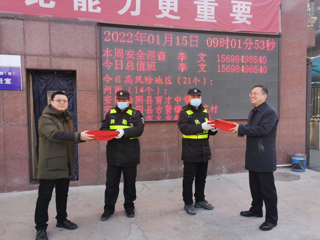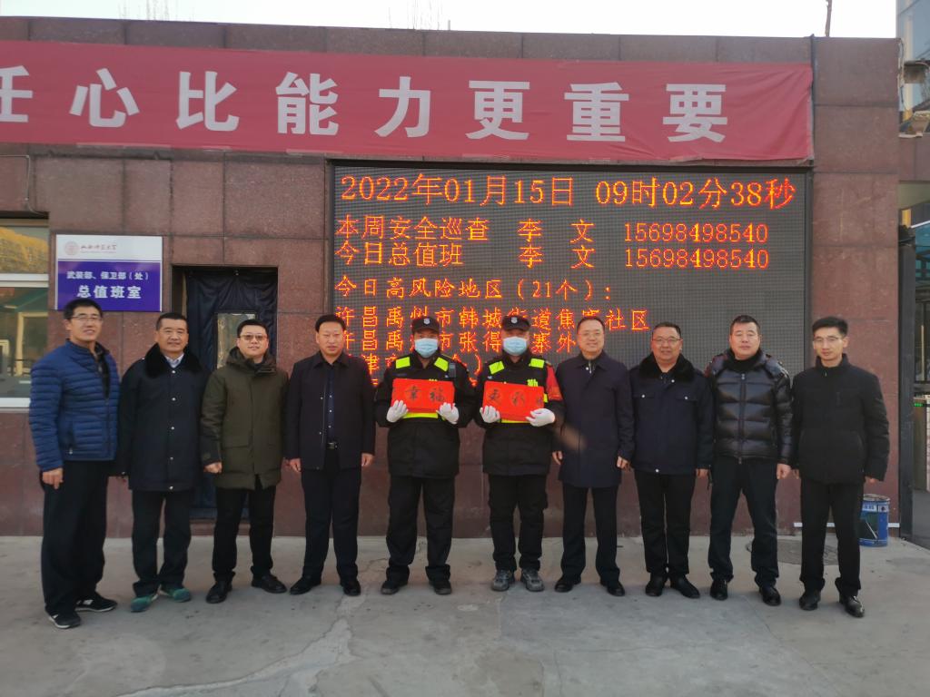 在新春佳节来临之际,公司于1月15日上午向保卫处赠送春联。公司党委常委、宣传部部长,pa捕鱼官方网站经理薛珠峰,副经理曹亚彬,保卫处处长王军峰出席活动。