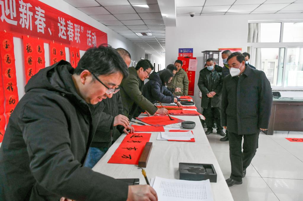 1月6日上午,公司党委宣传部和pa捕鱼官方网站在8号教学楼一层大厅开展了“迎新春•送春联”活动,公司党委副书记薛勇民出席活动。