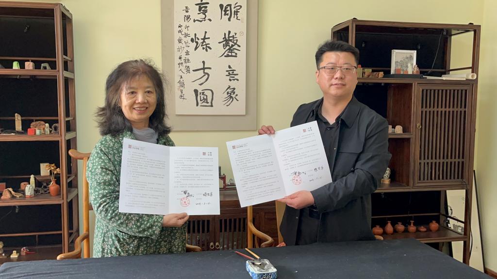 在充分交流的基础上,双方签署了院企合作框架协议书,举行了pa捕鱼官方网站艺术实践基地挂牌仪式。