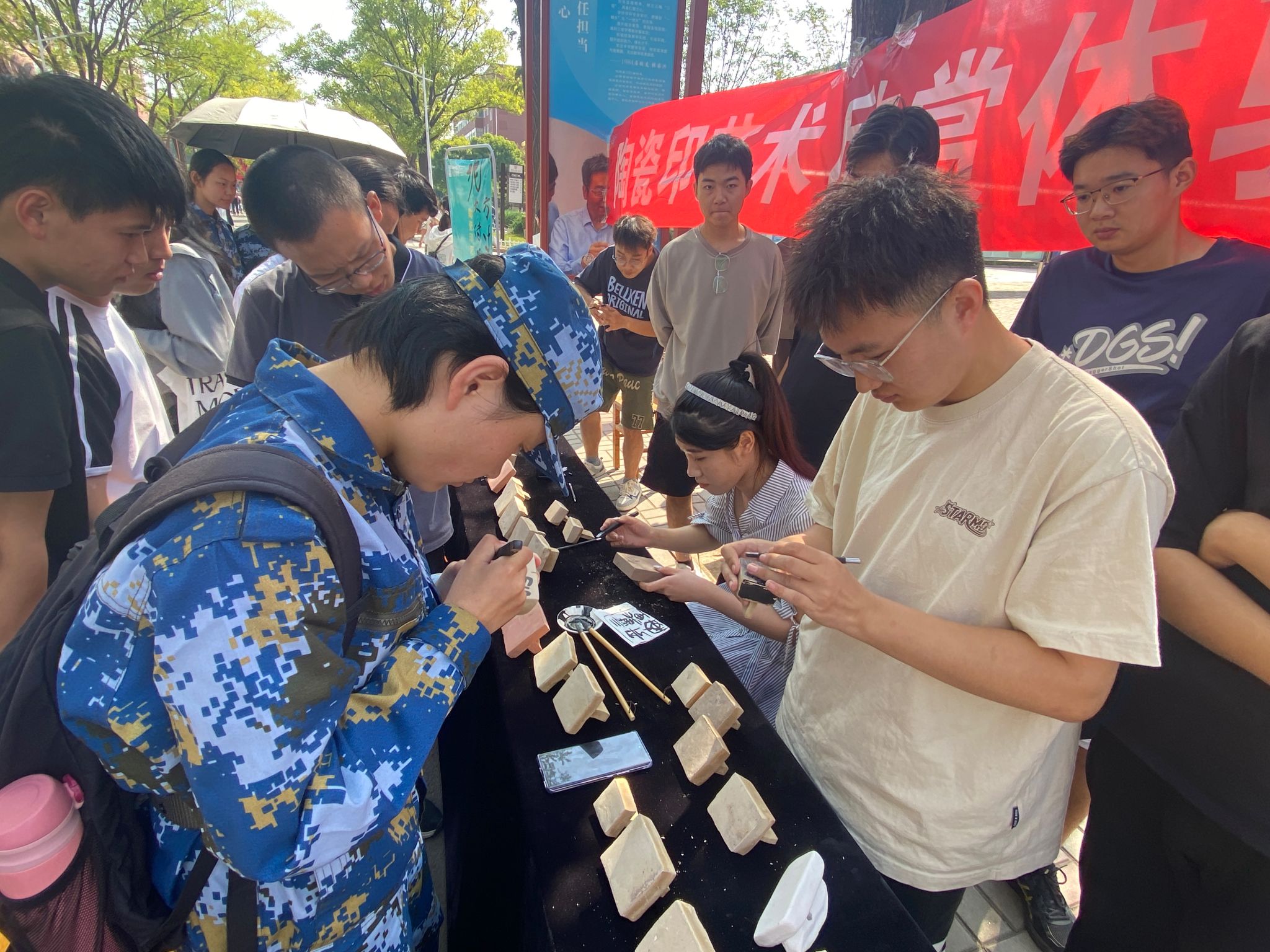 9月15日上午10点,为庆祝PA捕鱼官网入口建立65周年,pa捕鱼官方网站在思政文化街举办了陶瓷印艺术欣赏体验活动。