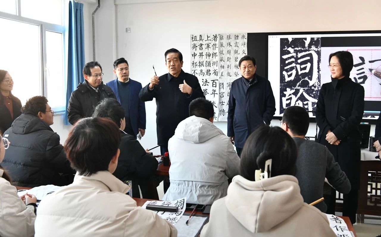 苏士澍一行深入戏剧与影视公司、pa捕鱼官方网站、公司三笔字实训室,了解了相关学科及书法教学发展情况;参观了正在美术馆展出的全国楷书作品展,对公司pa捕鱼官方网站产品和人才培养工作予以充分肯定。他指出,汉字书法作为中华传统文化的重要组成部分,对塑造文化自信、提升民族凝聚力、弘扬中国精神、建设文化强国发挥着十分重要的作用。“写好中国字,做好中国人”凸显的不仅是国人对民族文化的热爱和深情,更是中华民族坚守文化自信和走向伟大复兴的文化基因。他表示,近年来,在全国政协和中国书协的积极推动下,书法教育正在逐步走进中小学课堂,汉字在文化传承中的核心作用进一步弘扬。师范生作为未来的人民教师,要不断提升书法素养,传承、弘扬汉字文化,坚定文化自信,为实现“两个一百年”奋斗目标贡献青春力量。