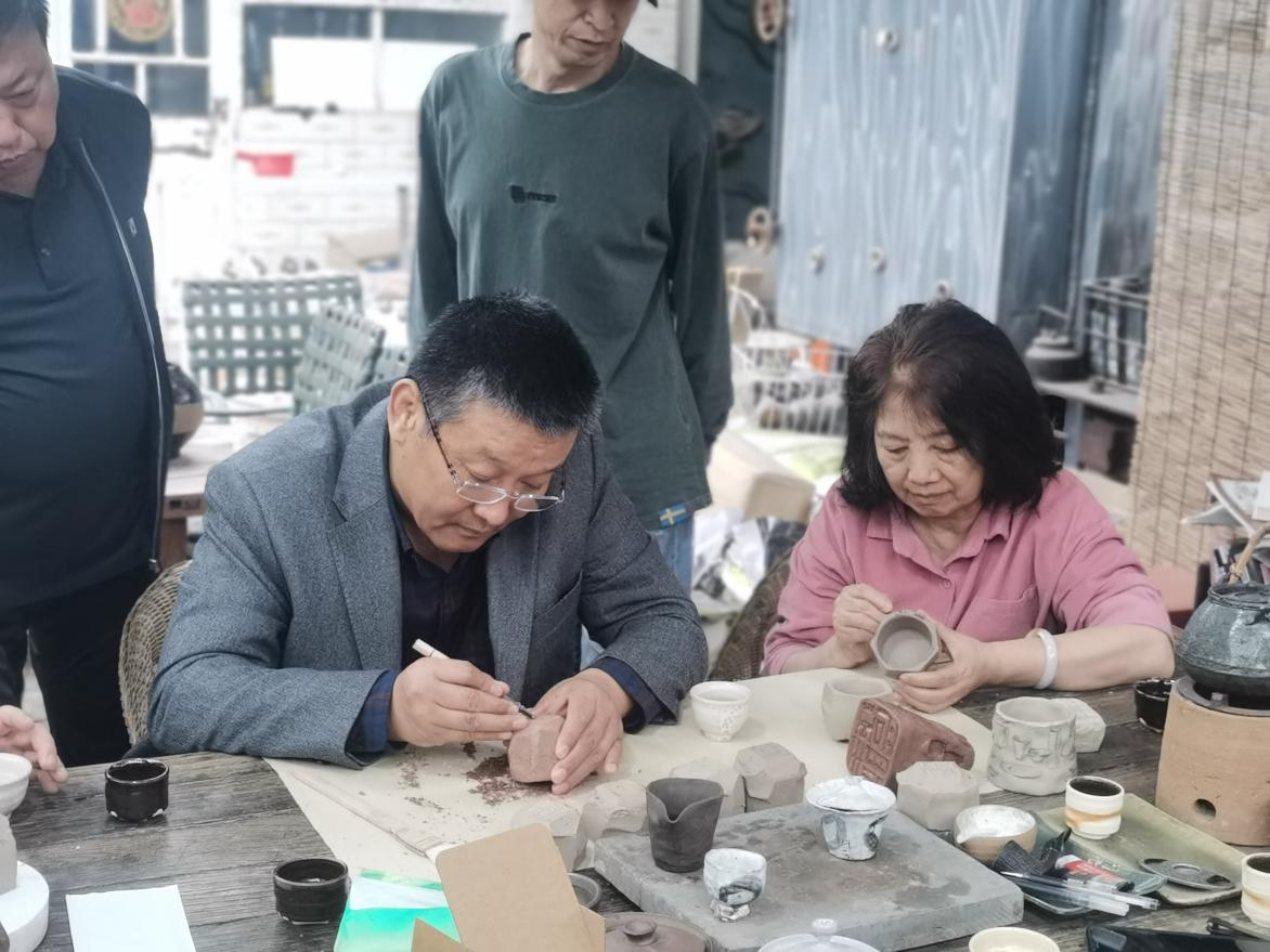 4月19日下午,魏广君在pa捕鱼官方网站经理曹亚彬、办公室主任王文清的陪同下,与晋阳印社社长阴凤华老师等人在交城陶瓷基地进行了陶瓷印创作交流。