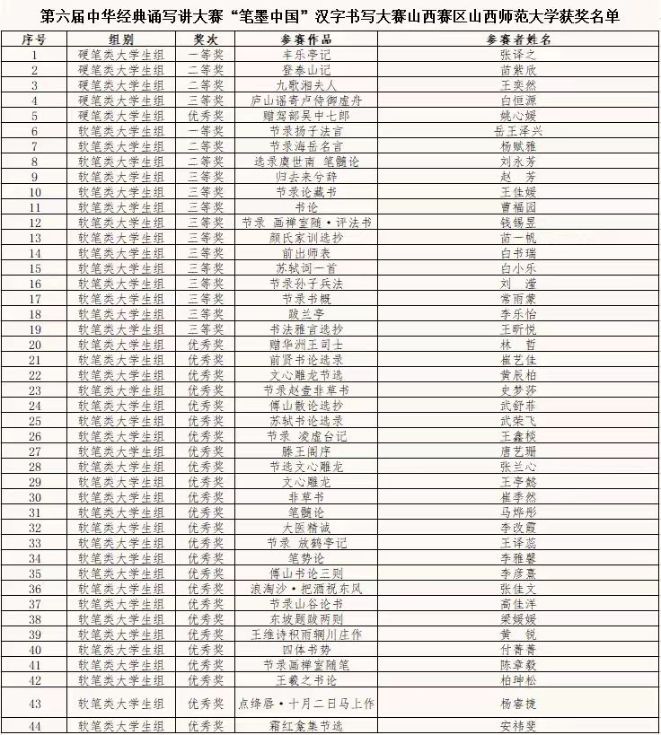 第六届中华经典诵写讲大赛山西赛区优秀组织奖(集体奖)获奖名单