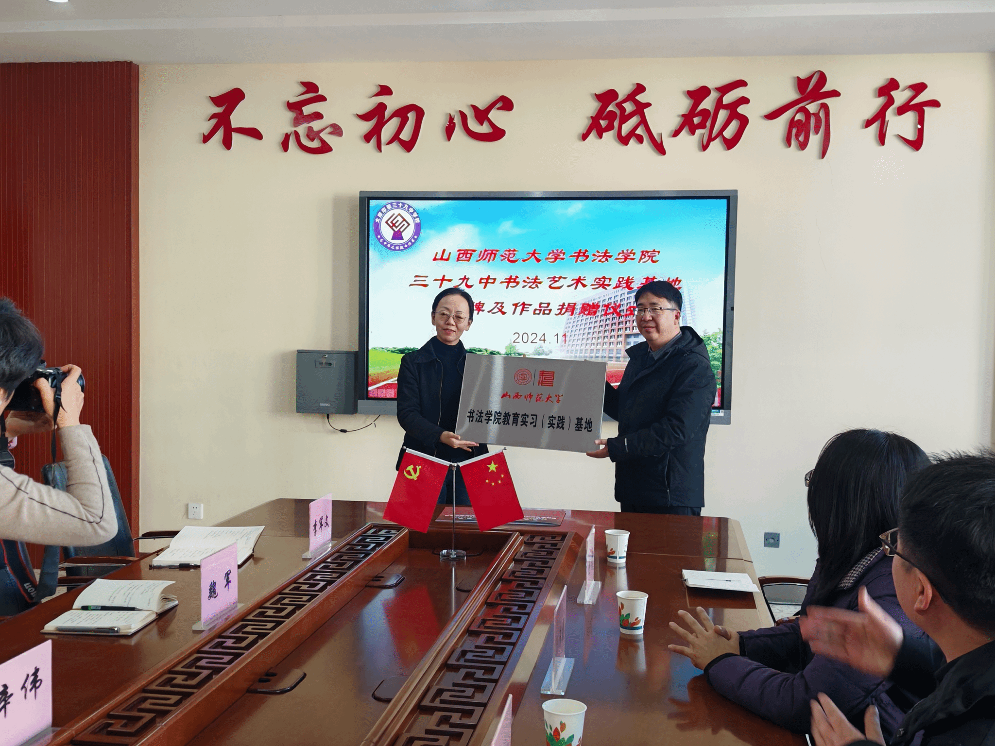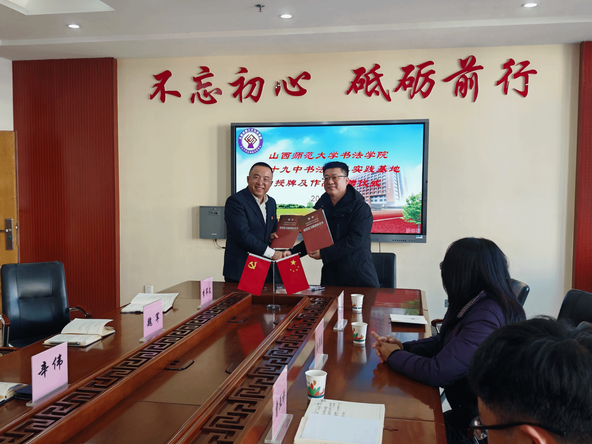 为深入贯彻习近平总书记关于传承发展中华优秀传统文化的重要论述,积极推动美育进校园,共同打造高质量的书法学习与实践平台,11月30日,pa捕鱼官方网站与太原市第四实验中学、太原市第三十九中公司分别举行了教育实习(实践)基地签约授牌仪式。