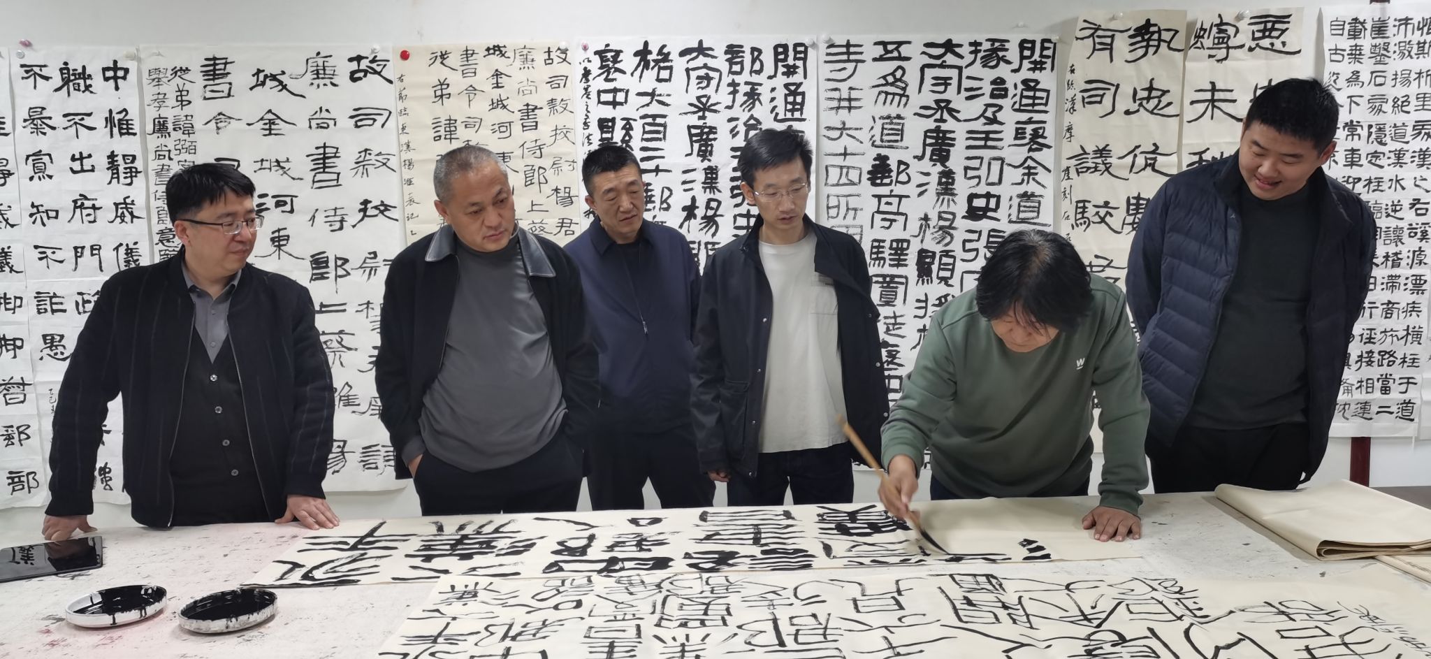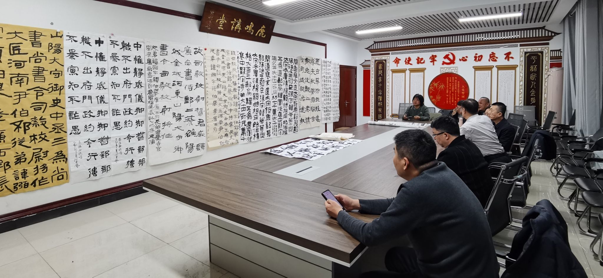 3月19日晚,公司成功举办了本年度的第2次书法技法教研活动(总第52期),主题为“演绎经典•汉摩崖隶书”。公司党总支书记王志宏、经理曹亚彬、副经理杨二斌、黄玉岩以及全体专业教师参加了此次活动。特别值得一提的是,晋中公司党委副书记、原山西师大pa捕鱼官方网站经理薛珠峰教授也应邀出席。活动由技法教研室主任王建魁主持。