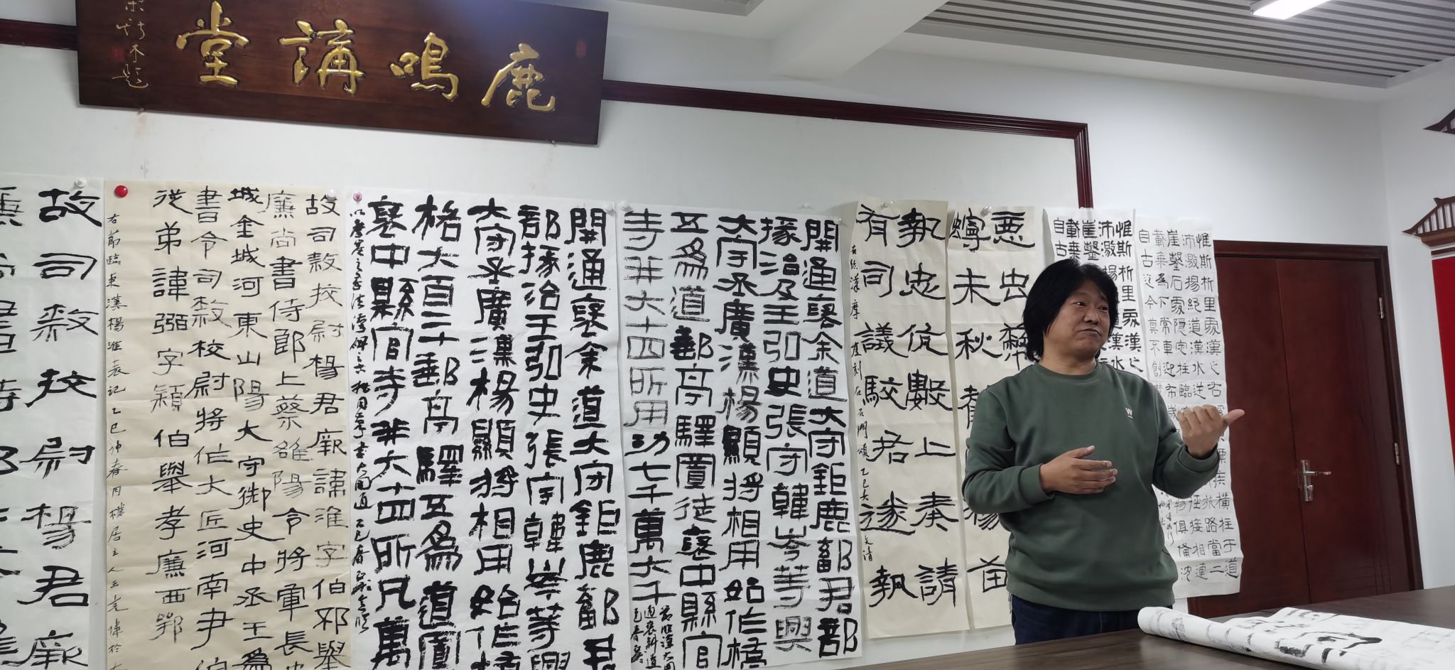 活动开始,各位专业老师围绕汉代摩崖隶书的书写要领和临摹心得进行了深入探讨。随后,老师们纷纷展示自己的演绎作品,并进行了详细的分享讲解。