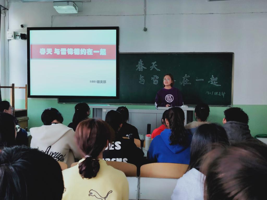 201935日,pa捕鱼官方网站1801团支部01316教室开展了春天与雷锋相约在一起主题团日活动。活动由团支书樊雅菁主持,支部全体团员参加。