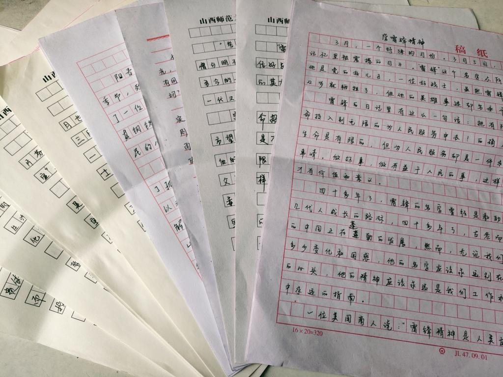 活动过程中,志愿者以部门为单位组成三支学雷锋活动小组,分别开展了学雷锋活动。宣调部学雷锋小组开展了“书写雷锋时代精神”主题书法作品征集,共征集书法作品二十余副,作品创作风格迥异、富有个性,用笔墨宣扬雷锋精神,将专业特色与雷锋精神学习充分结合;办公室学雷锋小组开展了“雷锋在我心中”主题征文活动,以文章的形式,写出自己学习雷锋精神的心得体会,并选出优秀文章进行展示;外联部学雷锋小组走进校园、走进日常生活,打扫莳英园卫生,美化校园环境,做日常生活中的“雷锋”。