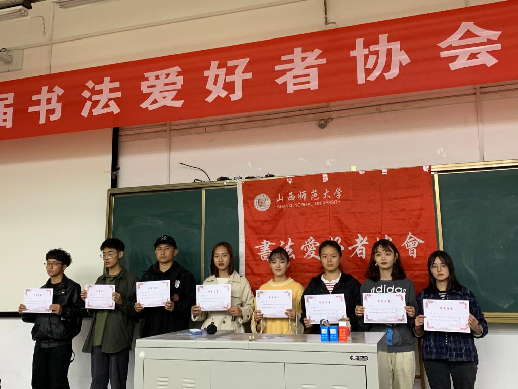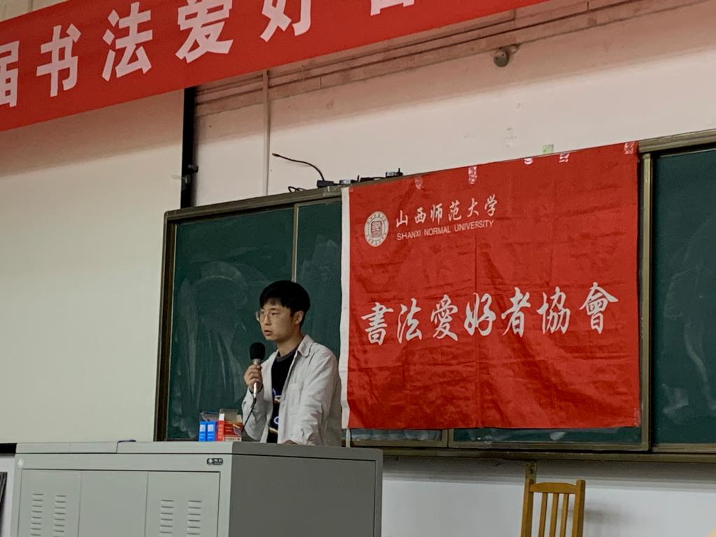 见面会上,第十八届及十九届书法爱好者协会社长武文斌代表社团欢迎了加入书法爱好者协会的各位同学,并为大家简要介绍了中国书法发展史。第二十届书法爱好者协会社长张浩向全体人员介绍了社团主要情况和上一学年开展的特色、常规活动。最后,张文强和武文斌向上一学年表现优秀的社团干事颁发了第十九届书法爱好者协会优秀教师荣誉证书和优秀社员荣誉证书。