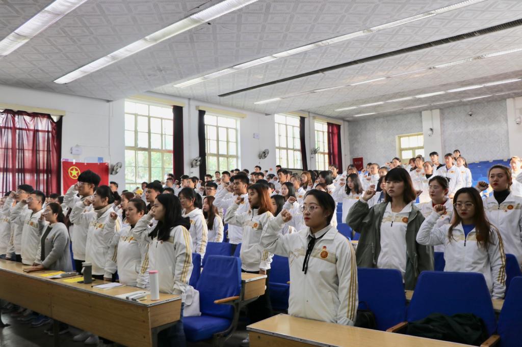 11月8日,pa捕鱼官方网站“我与祖国共奋进——国旗下的演讲”主题团日活动暨2019级新生入团再教育活动在05203教室举行。活动由院团委员工副书记乔宇丹主持,院团委副书记宁译锐和pa捕鱼官方网站全体团员均参与了本次活动。