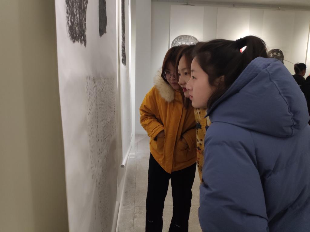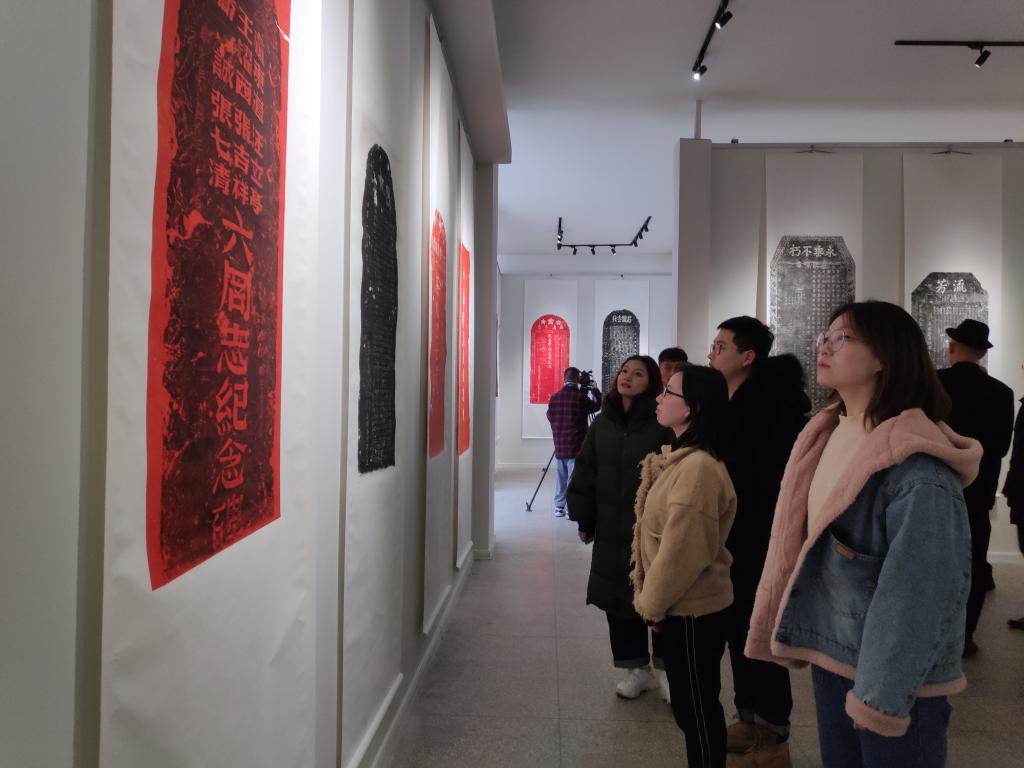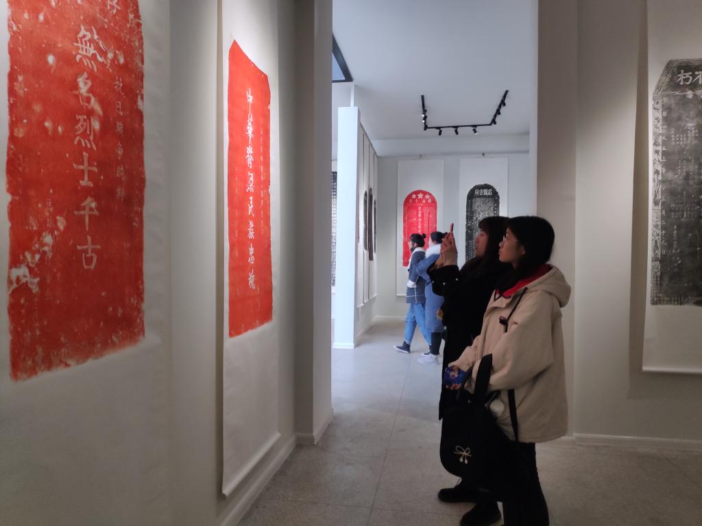 左权县和周边的武乡、黎城、涉县,都是抗战英雄县,抗日英烈名碑很多。每块碑都有一段可歌可泣的英雄故事,拓片构成的《太行英烈碑拓片展》,就是一部生动的太行抗战历史教材。在参观展览过程中,同学们认真观摩,研究讨论拓片中的书法专业技巧,同时又被拓片中的英雄故事和革命精神所深深感动。