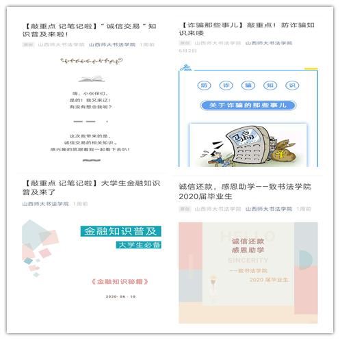 在活动开展过程中,公司组织各班分别开展了线上主题教育班会,以课堂专题教育形式把资助诚信和金融知识教育落实到每名员工身上;举办了资助诚信和金融知识教育主题漫画作品微展,增强诚信教育和金融知识教育的鲜活力、生动性和趣味性;通过微博、微信等平台进行了专题知识普及推送和相关活动报道,在公司营造浓厚的诚信文化氛围。