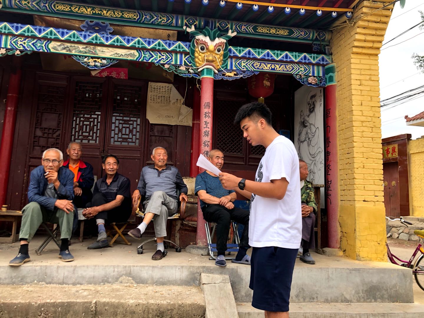 到达实践地忻州市定襄县杨芳村后,队员们首先与杨芳村支书郭建文进行了座谈交流。在交流过程中,郭书记向大家介绍了改革开放以来杨芳村的村貌变化和村民们的生活变化,使队员们对改革开放以来农村的发展变化有了更加深入的了解。