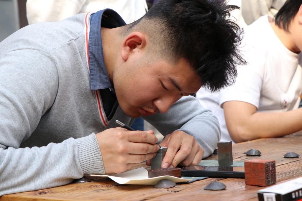 同学们充分发挥专业特色表达对党的祝福和热爱。梁子昊和梁辰同学向大家展示了篆刻“共产党好”和“共产党万岁”,王嘉乐、石晓丹、张龄涵和陈雯鹏几位同学现场书写了“为中国人民谋幸福 为中华民族谋复兴”“用汗水浇灌收获 用实干笃定前行”“中国共产党万岁 祖国和人民万岁”“开天辟地”等书法作品。