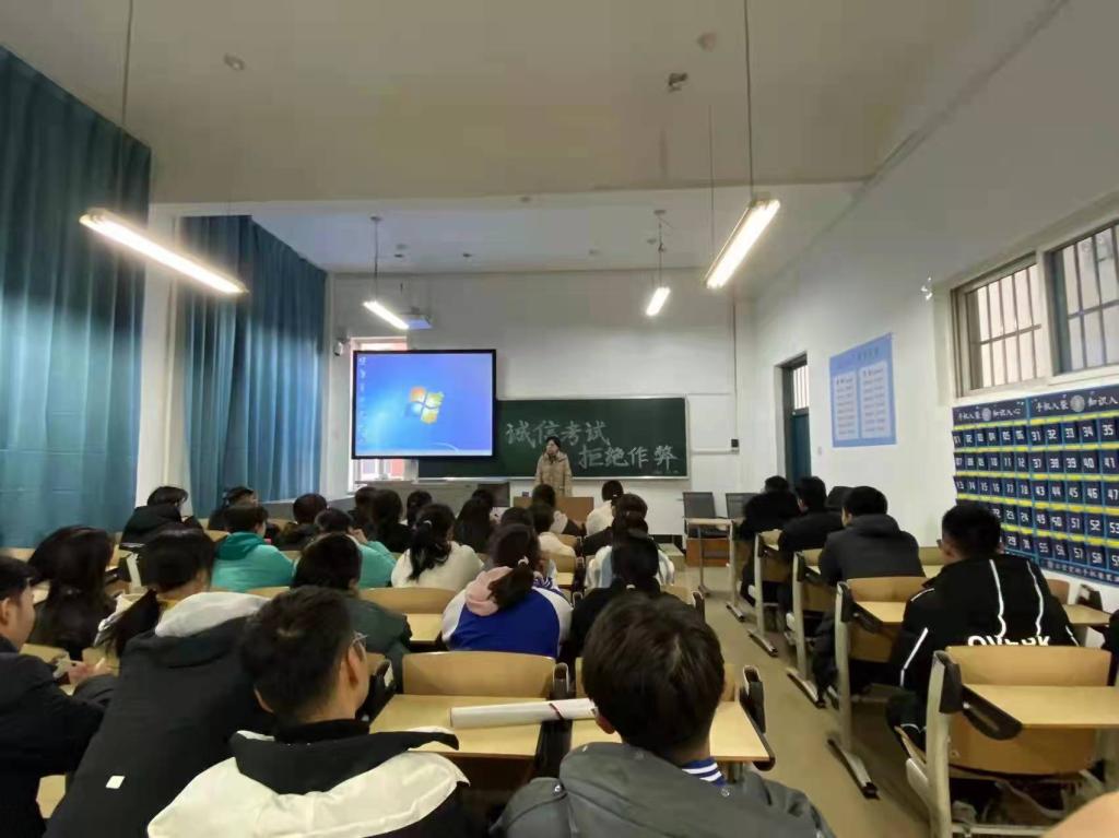 期末考试即将来临,为了使同学们以更加积极向上的心态迎接考试,增强同学们的诚信意识,营造良好的考试氛围,2101班于12月14日下午在南区4101教室召开了“诚信考试,拒绝作弊”主题班会。本次班会由新生辅导员霍红梅老师主持,大一全体同学参加。