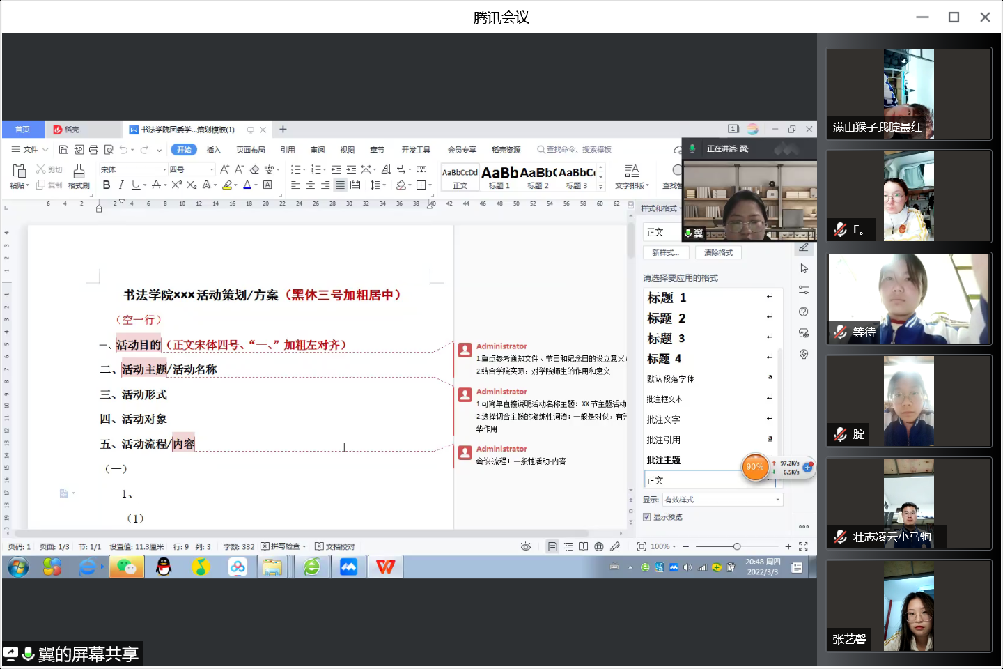2022年3月3日,pa捕鱼官方网站团委在线上举办了基本办公能力专题培训。本次培训由院团委书记宁译锐主讲,公司全体团学骨干培训暨青马培训班学员参加了本次培训。