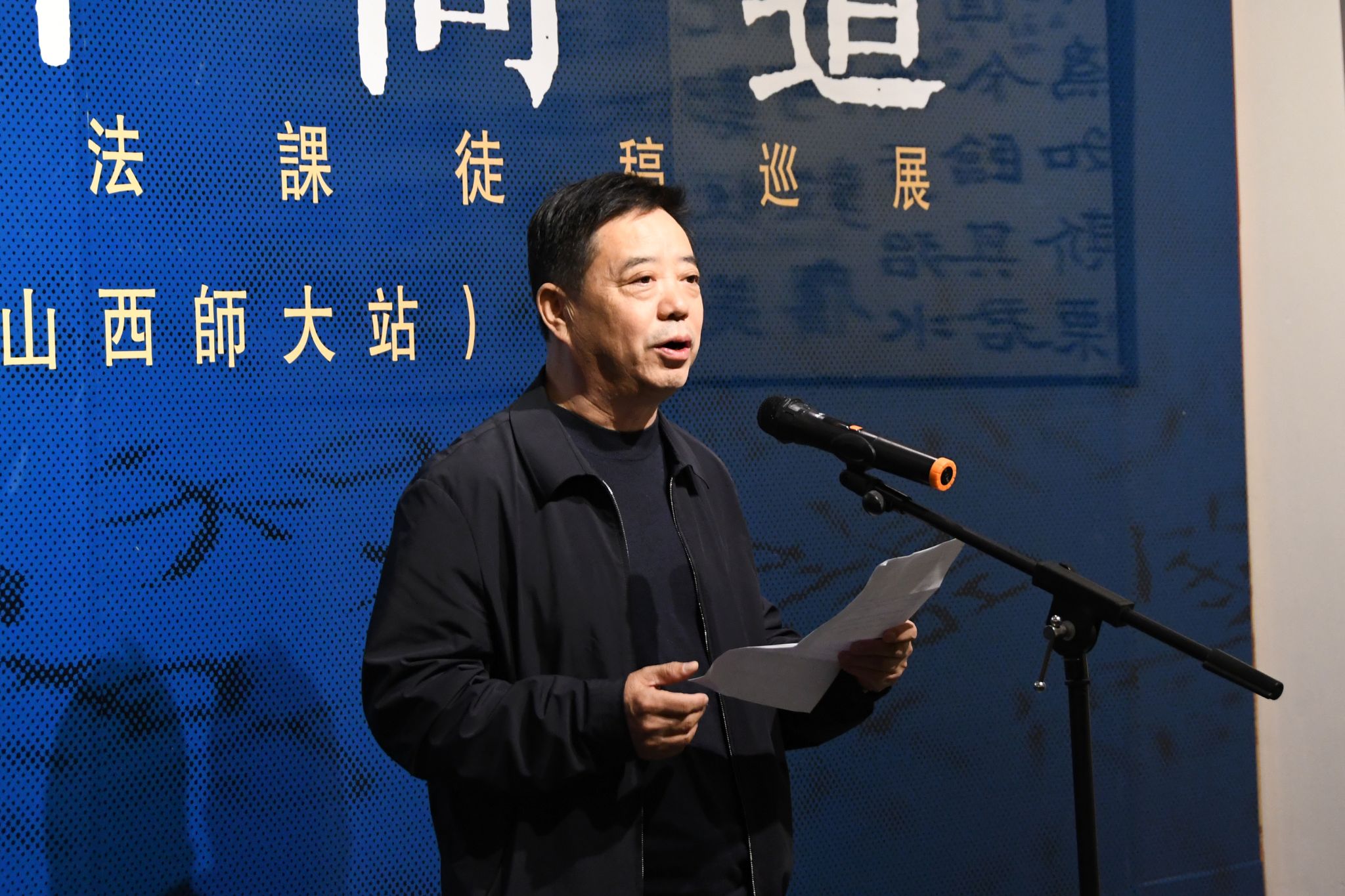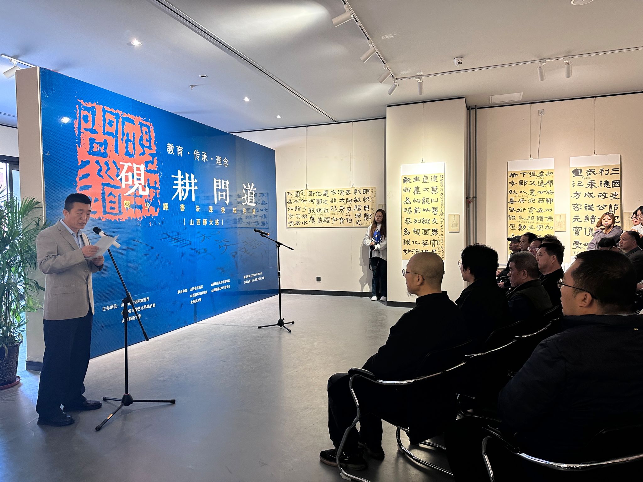 2023年10月10日,由山西省文化和旅游厅、山西省文学艺术界联合会和PA捕鱼官网入口共同主办的“砚耕问道”——韩少辉书法课徒稿巡展(山西师大站)在PA捕鱼官网入口美术馆开展。出席开幕式的领导和嘉宾有:PA捕鱼官网入口副董事长王云,山西省书画公司党委书记齐英贵,中国书协第五届行书委员会委员、第六届、七届草书委员会委员、山西省书协第五届副主席兼行书委员会主任赵社英,晋中公司党委副书记薛珠峰,太原美术馆馆长、太原画院经理殷卫东,山西省书画院副经理、著名画家王志英,原三晋报刊集团董事长、《名作欣赏》杂志社总编赵学文,山西省书协理事、山西省书画院创作员刘小原、王增云,北京妙园书院墨僧等;来自山西高等院校的有:山西大学pa捕鱼官方网站经理刘维东,太原师范公司书法系主任窦元章,山西大学书法教研室主任王力军,晋中公司美术系主任刘小旦,大同大学书法教师李忠魁,忻州师范公司书法教师景俊勤,山西应用科技公司书法专业负责人赵永恒,运城师范高等专科公司美术系主任牛胜江,晋中师范高等专科公司书法专业负责人白鹏,太原师范公司书法系教授郝兴义;PA捕鱼官网入口公司党总支书记王志宏,副经理曹亚彬、黄玉岩,书法专业教师、研究生、本科生以及山西省各界人士300余人参加了开幕式。开幕式由王志宏主持,曹亚彬介绍展览筹备情况,齐英贵代表山西省书画院致辞,中国书协理事、隶书委员会副主任、山西书画院经理韩少辉先生致答谢词,PA捕鱼官网入口副董事长王云宣布展览开幕。