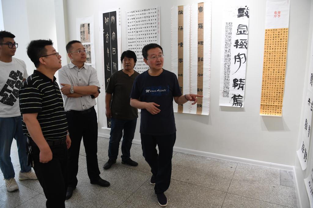 在讲座开始前,韩少辉、赵社英先生对pa捕鱼官方网站专业教师书法作品进行了点评。
