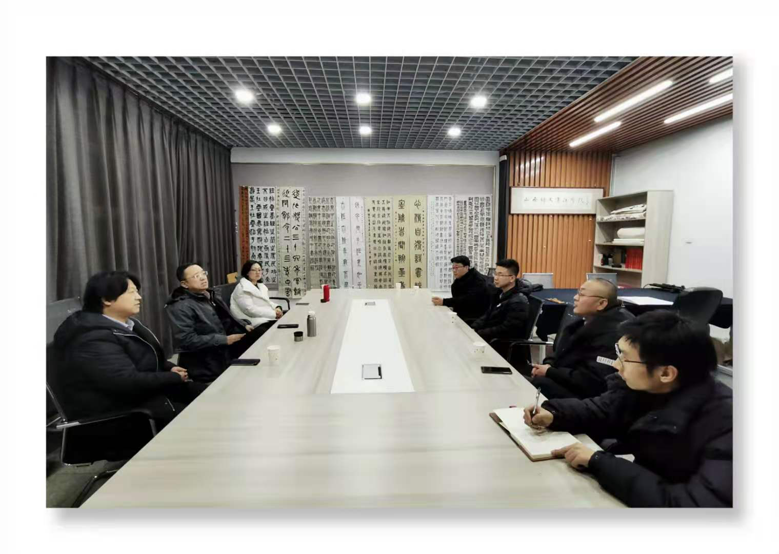 2021年1月6日晚,公司技法教研室活动开展专业教师第七次“重温经典”艺术交流活动。活动由技法教研室主任王建魁老师主持,薛珠峰、曹亚彬、杨二斌、黄玉岩、丁俊瑞、王文清、周鸿鹏7位老师参加本次教研活动。本次活动,大家从用笔、章法、形式等多方面对篆书创作作品进行了深入交流。