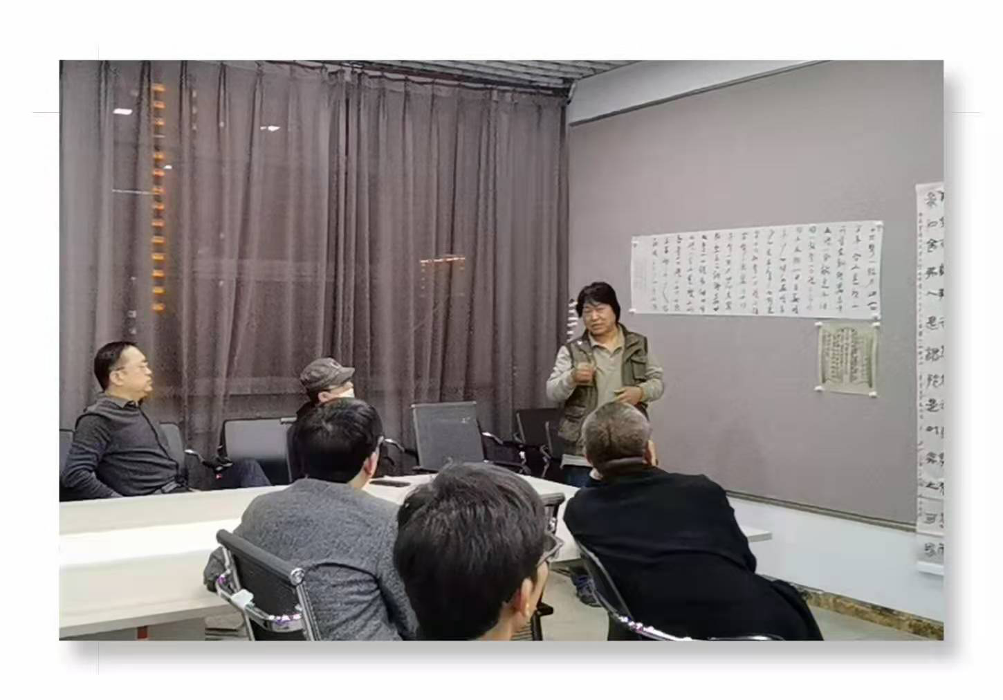 2021年4月28日晚,公司技法教研室活动开展专业教师第十二次“重温经典”艺术交流活动。活动由技法教研室主任王建魁老师主持,薛珠峰、曹亚彬、杨二斌、黄玉岩、丁俊瑞、王文清6位老师参加本次教研活动。本次教研活动,各位老师继续深入学习简帛书,在点评作业过程中对课下临习时遇到的问题进行了交流讨论。薛珠峰经理对本次活动进行了总结。