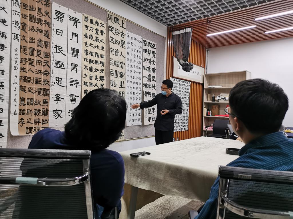 2021年5月19日晚,公司技法教研室活动开展专业教师第十三次“重温经典”艺术交流活动。活动由技法教研室主任王建魁老师主持,曹亚彬、杨二斌、黄玉岩、丁俊瑞、王文清、周鸿鹏6位老师参加本次教研活动。教研活动中,大家对各自临摹的清代隶书作品进行了点评交流。