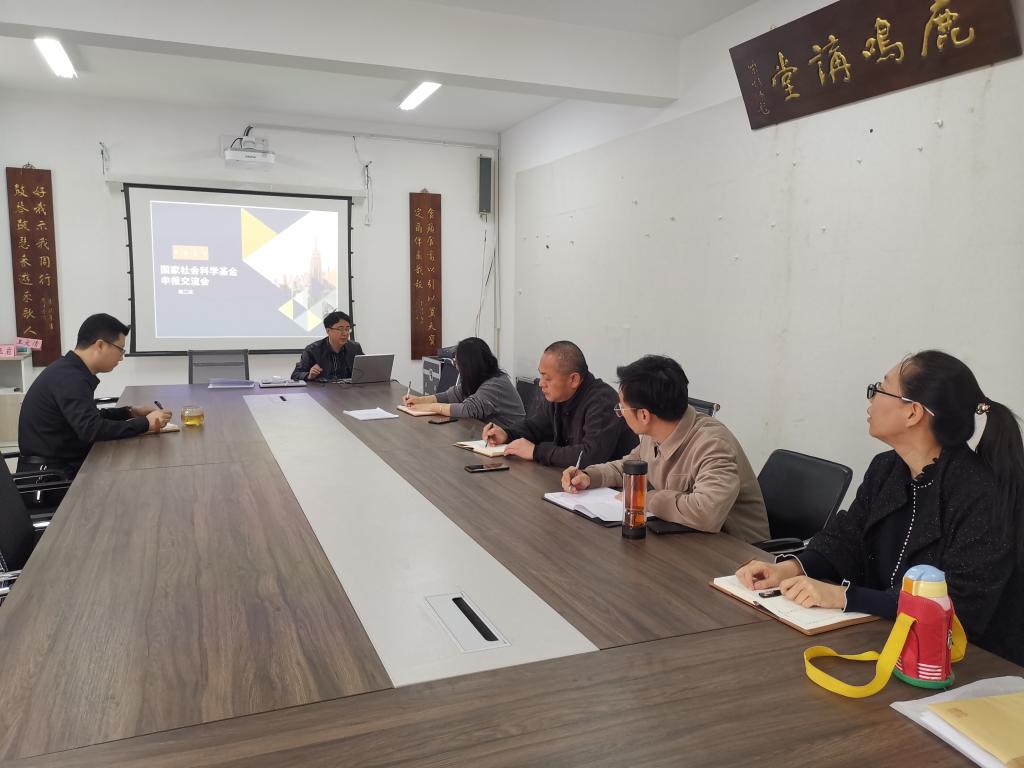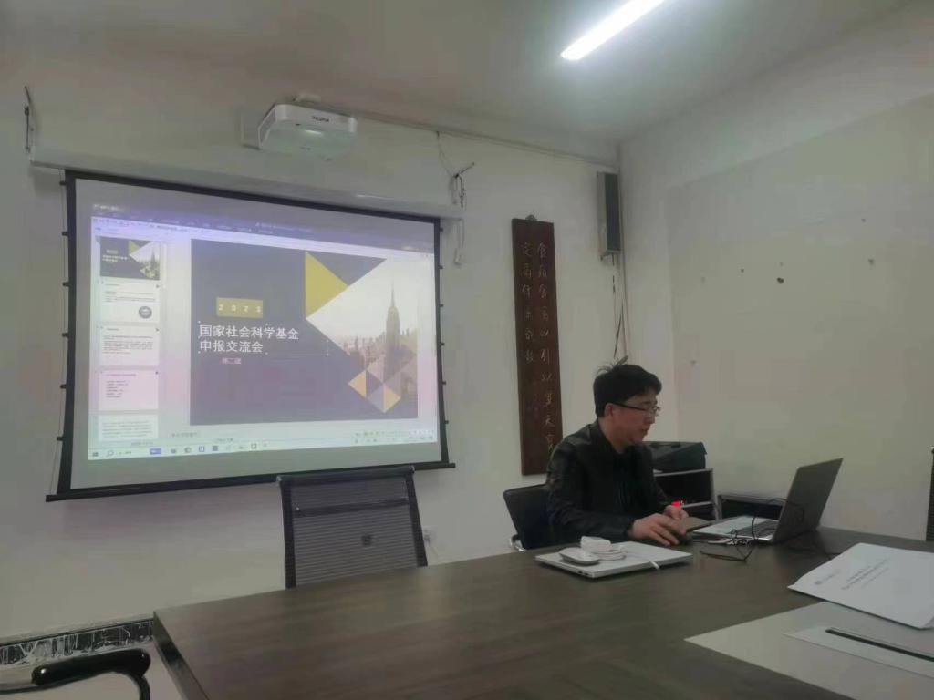 2023316日,由pa捕鱼官方网站理论教研室组织的国家社科基金申报交流会在公司301会议室举行,理论教研室主任杨二斌副教授进行主讲,公司相关教师参加交流会。