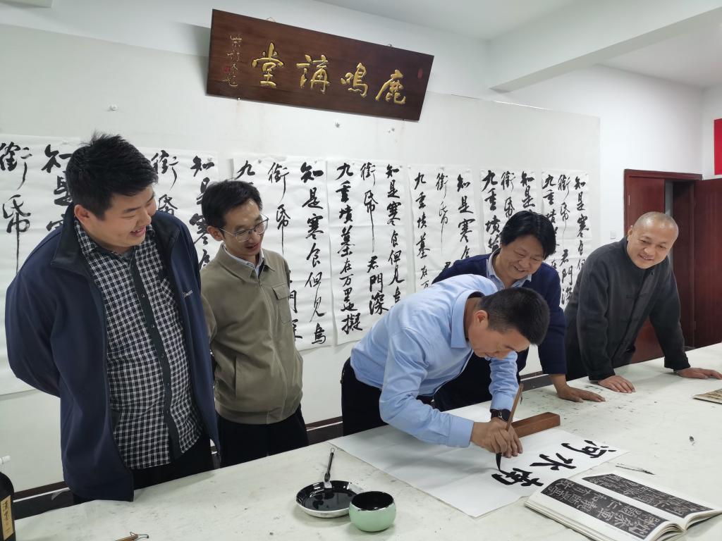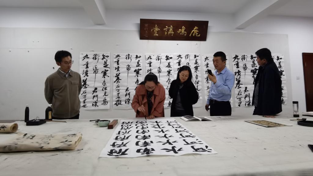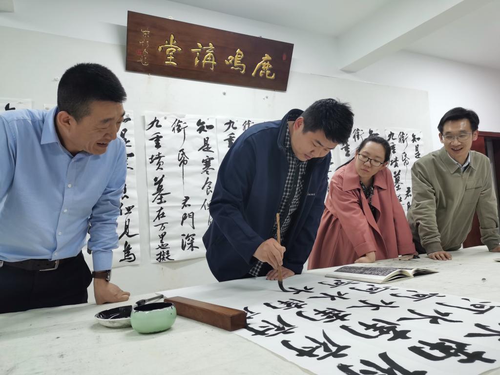 活动伊始,全体教师认真观摩了各位参加人员提交的作品。接着王建魁老师说明了临摹苏轼《黄州寒食帖》的目的和意义,并邀请曹亚彬老师对《黄州寒食帖》进行了讲解。曹亚彬老师根据个人的临创经验,从宏观上阐释了《黄州寒食帖》的艺术特点,并与被誉为“天下第一行书”的《兰亭序》、“天下第二行书”的《祭侄文稿》进行对比,指出了《黄州寒食帖》在情感表达上的特色。讲解结束后,曹亚彬老师对各位老师的作品逐一进行了点评,并提出了富有成效的修改意见。接下来黄玉岩、丁俊瑞等老师介绍了个人的临摹心得,并从不同的角度、不同的侧面分别对各位老师提交的作品进行了直语式的批评。点评结束后,各位老师现场进行书写,相互观摩了不同的临摹方法和书写状态。